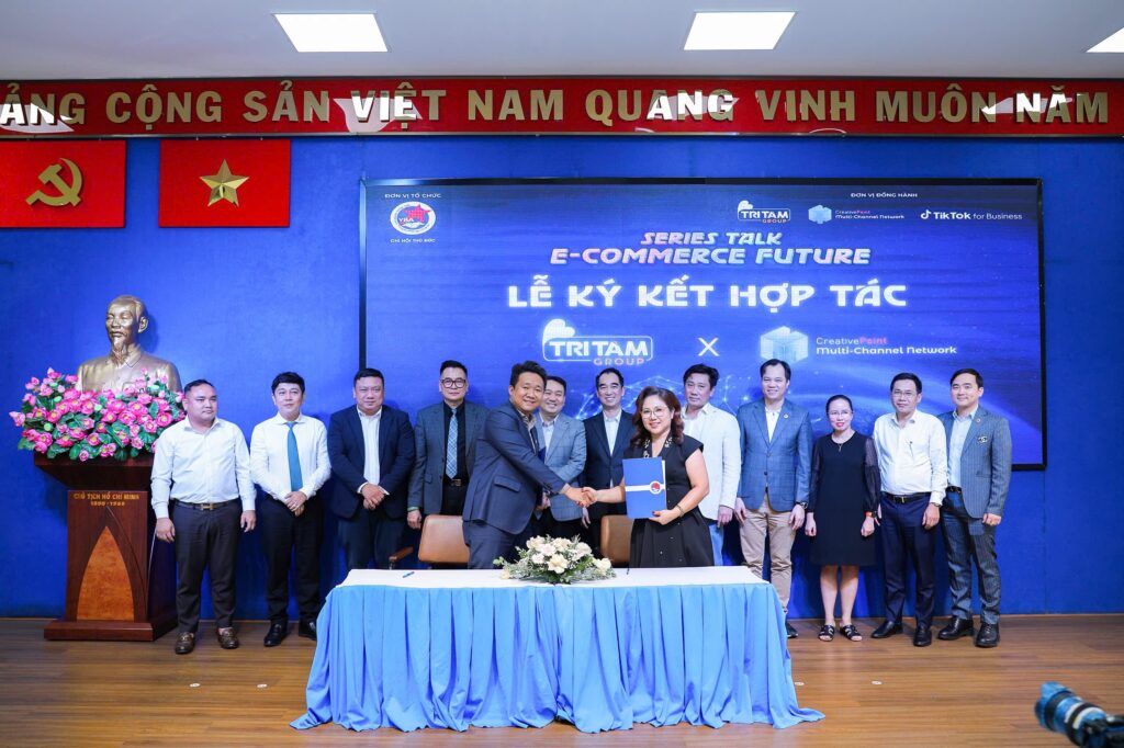 Điểm nhấn của sự kiện là lễ ký kết hợp tác dài hạn: Tri Tâm Group × Creative Point: Phát triển chương trình đào tạo nội dung TMĐT chuyên sâu cho doanh nghiệp.