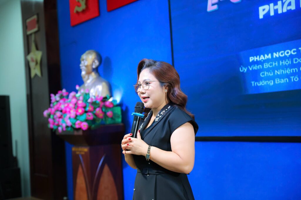 | Bà Phạm Ngọc Thanh Phương - Trưởng Ban Tổ chức, Chủ nhiệm YBA Thủ Đức kiêm Tổng Giám đốc Tri Tâm Group phát biểu tại sự kiện |